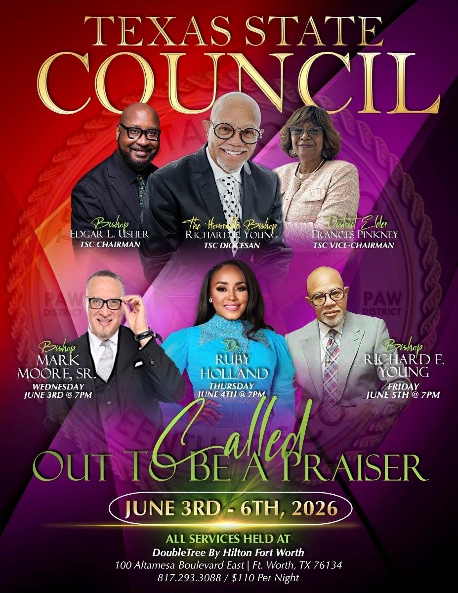 All day services (day and night) will be held at the DoubleTree by Hilton Fort Worth Hotel.